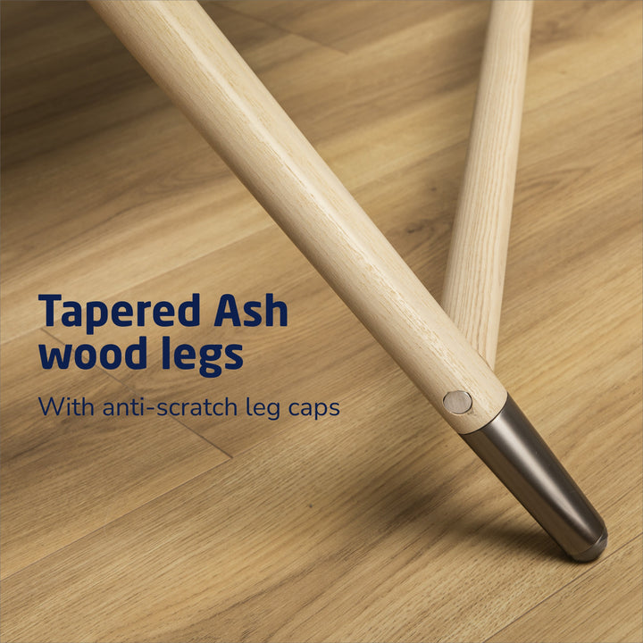 - Tapered Ash wood legs with specially finished metals and anti-scratch leg caps