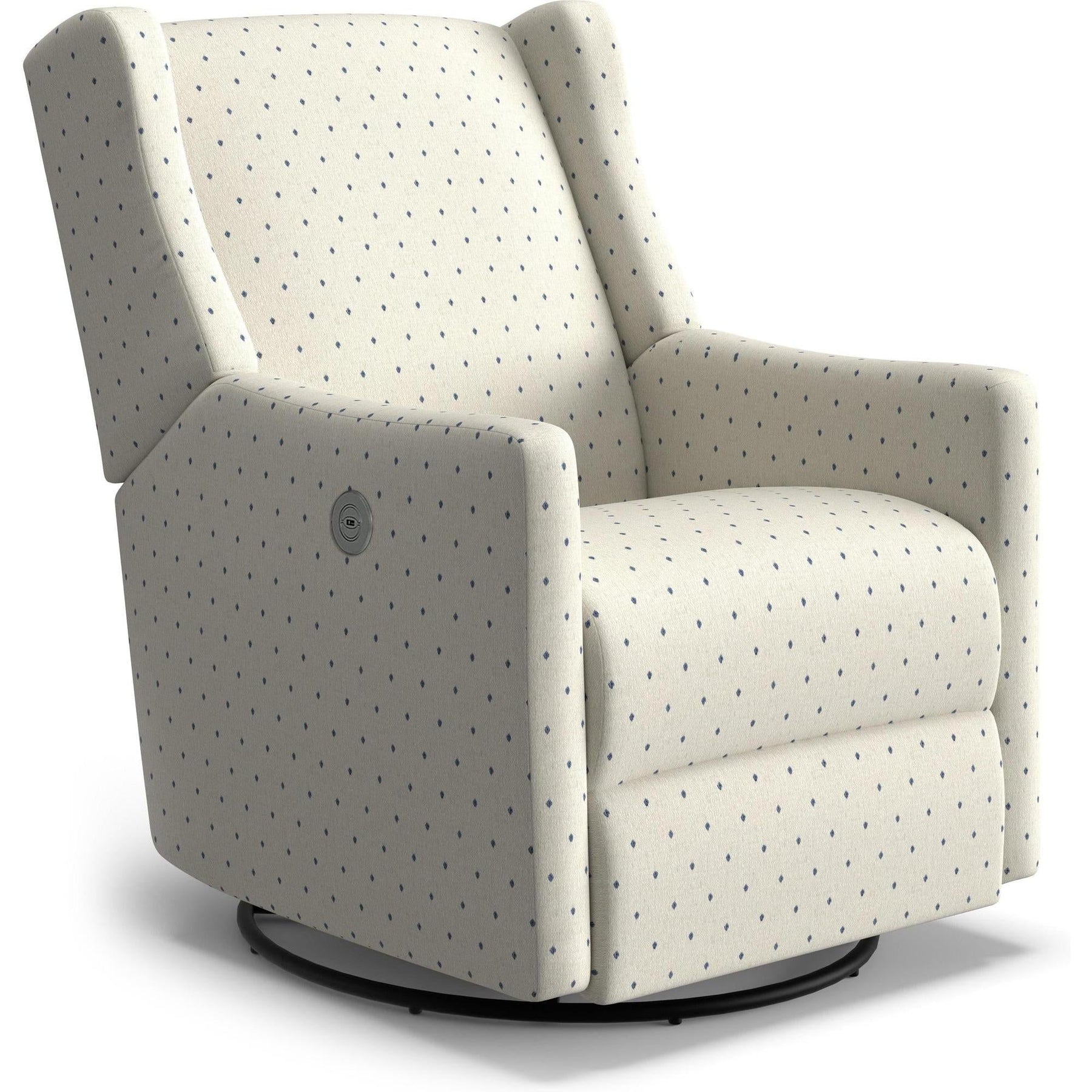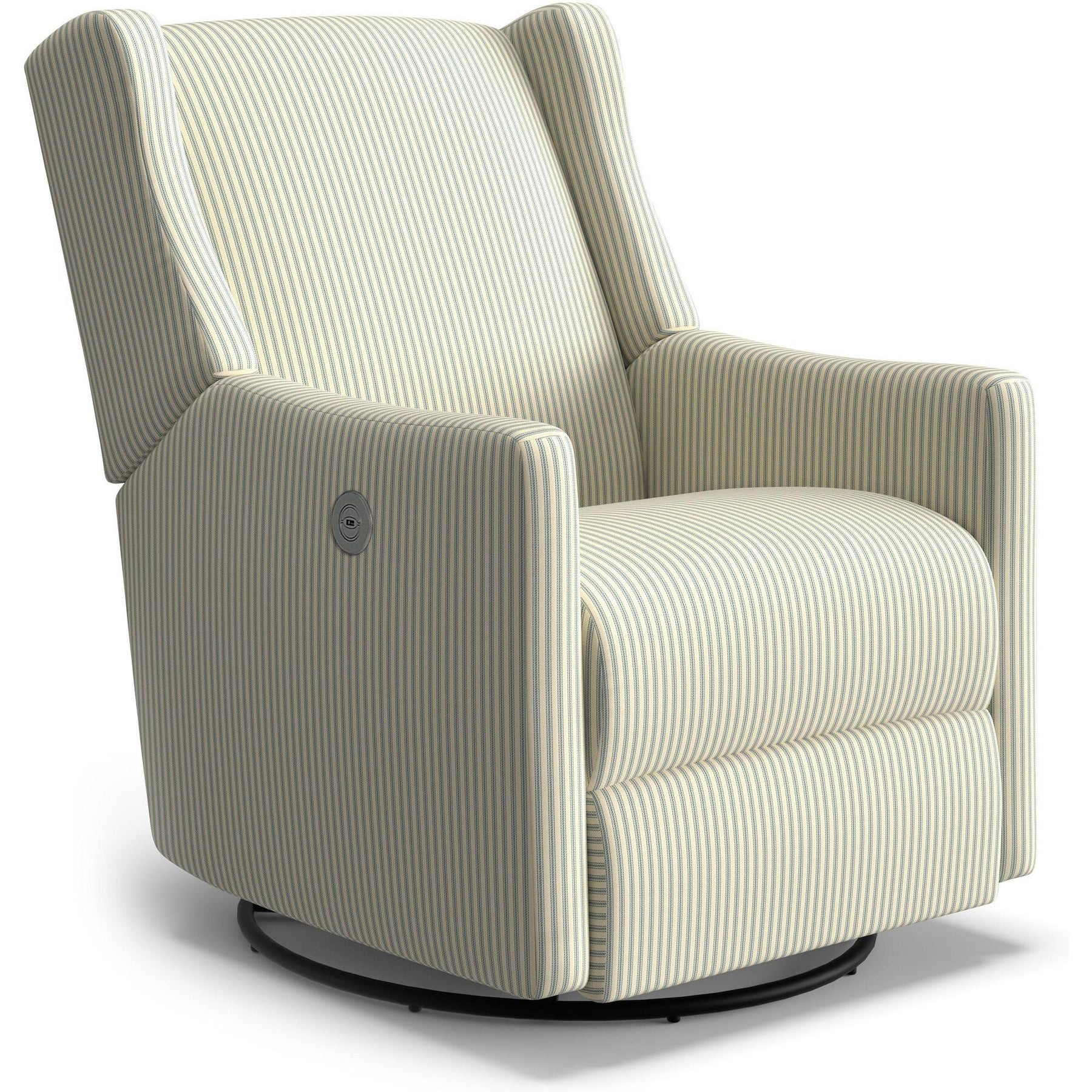 The Lillian is a stylish, whisper smooth swivel glider recliner that has a tightly padded back with contoured track wings and arms, French seaming details, and a comfortable, supportive foam seat.  Choose from over 700 fabric options to make a statement piece, or opt for a fabric that'll transition easily from nursery to living room.