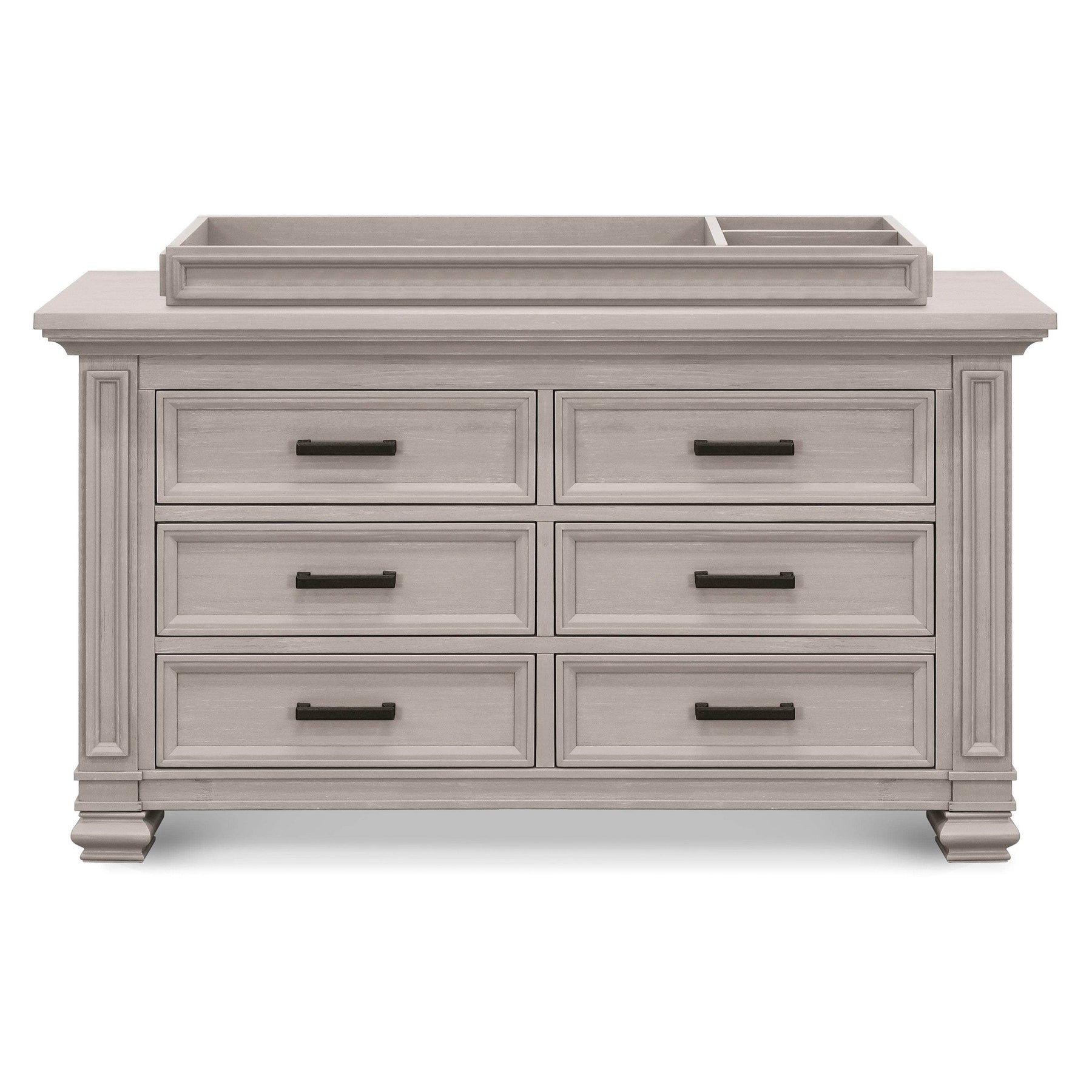 With intricate molding details adorning each side, the Palermo Changing Tray is perfect for adding stylized function to your Palermo 6-Drawer Dresser. The changing tray secures to the dresser using safety brackets, converting it into a changing table, and includes space for a changing pad as well as two compartments for your baby’s necessities. The tray is easily removable, allowing your dresser to grow with your baby.