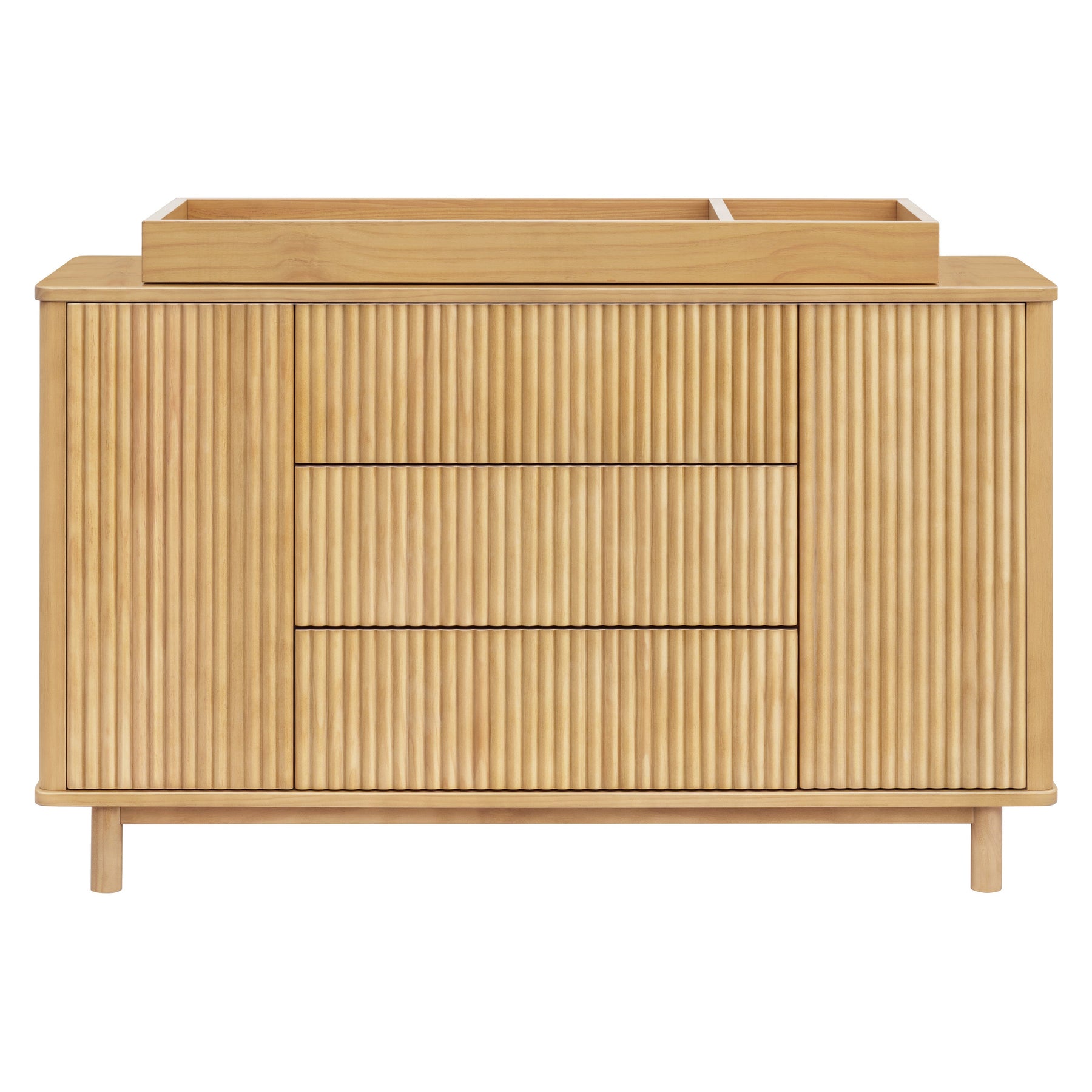 • SOPHISTICATED YET VERSATILE DESIGN: With smooth, rounded corners and elevated fluted tambour paneling, the Pogo dresser was designed to be a statement piece for the modern nursery and beyond. Seamlessly transition from changing table to dresser by incorporating optional removable changing tray for those early years (changing tray #M0619 sold separately).