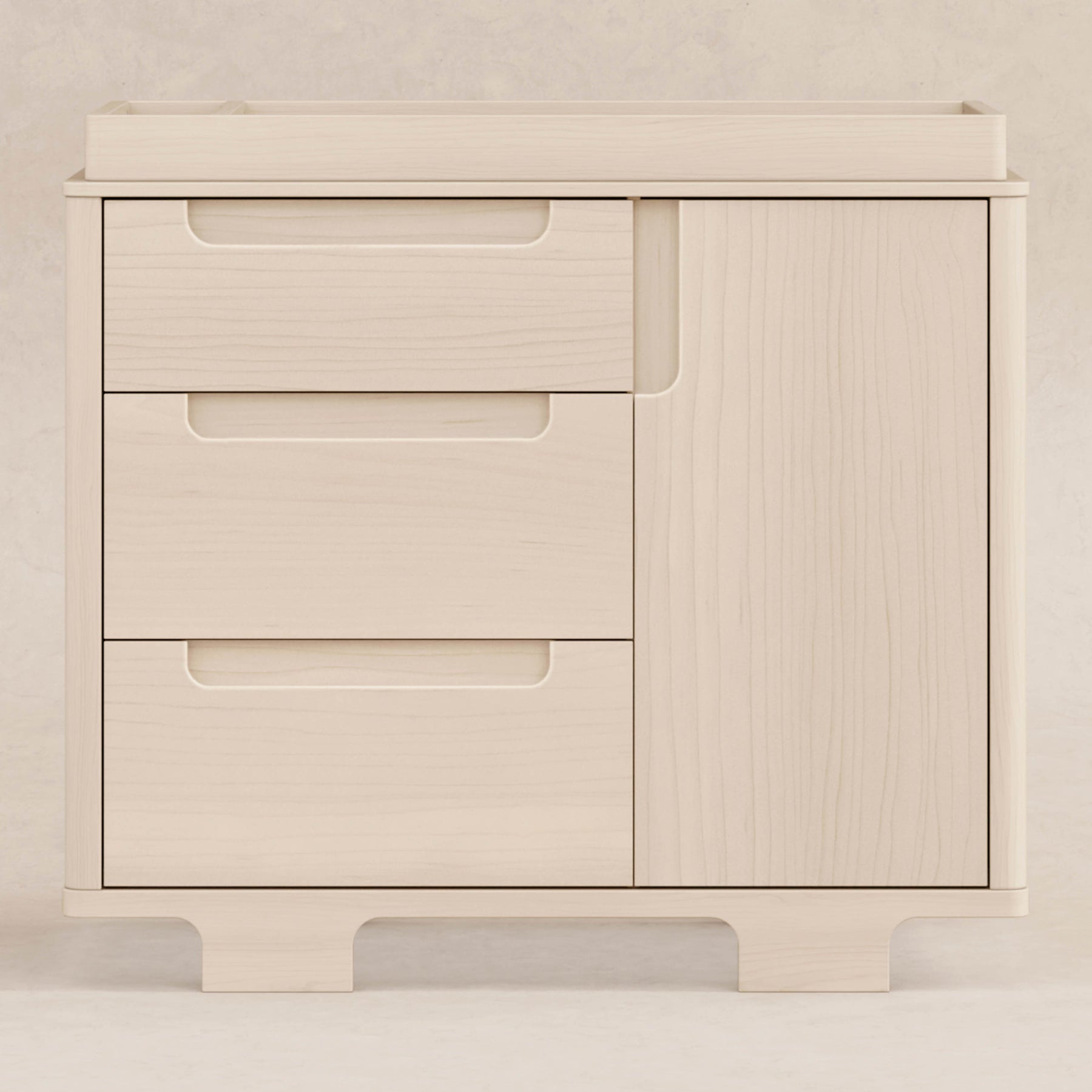 Designed to complement the Yuzu 8-in-1 All-Stages Crib, the Yuzu 3-Drawer Changer Dresser marries form and function with playful arched feet, gently curved corners, included changing tray, and plenty of storage with 3 drawers and 1 spacious cabinet. Whether you're going for a classic, modern, or eclectic look, this versatile dresser is a perfect statement piece in the nursery.