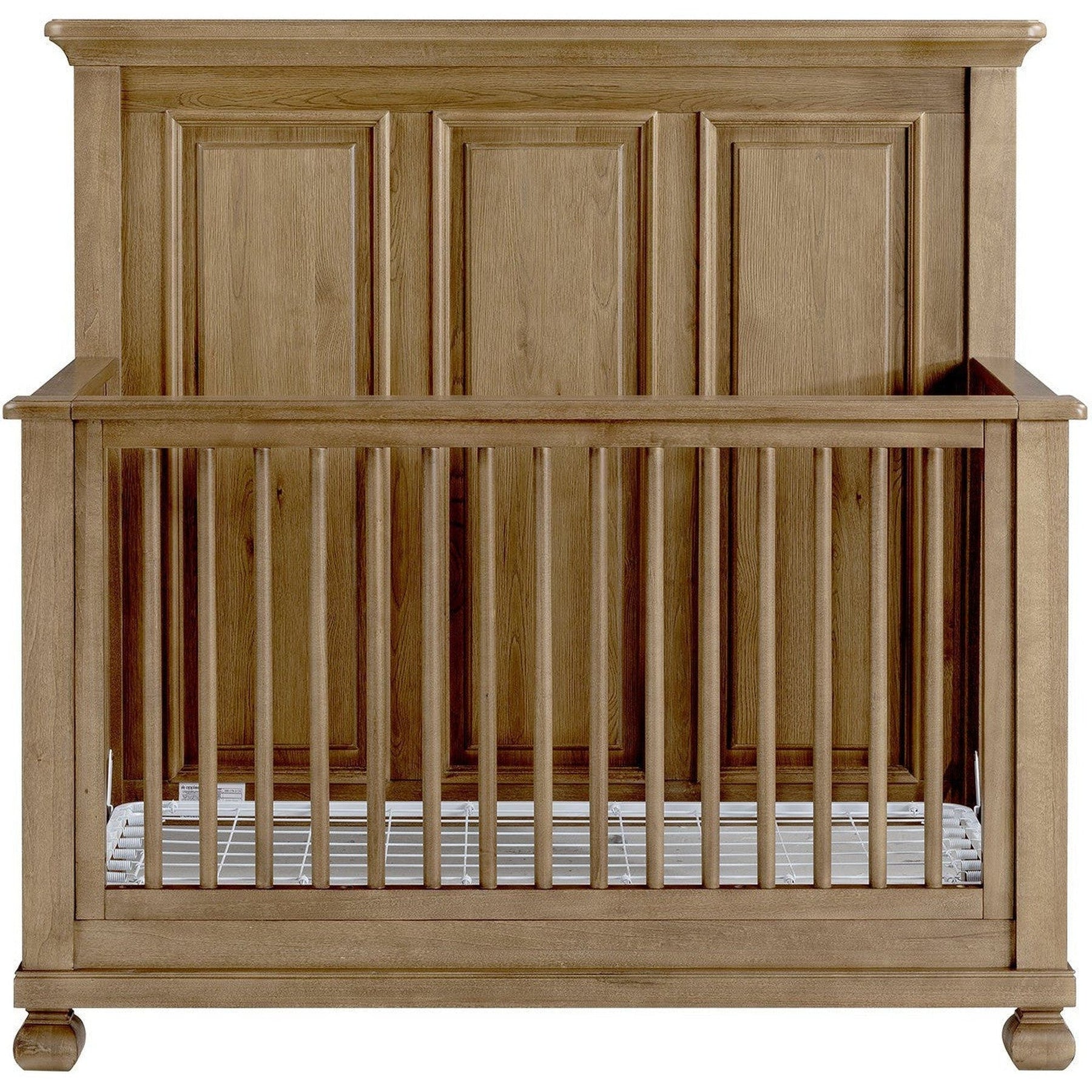 Discover the enchanting Solvang Convertible Crib by Appleseed, a farmhouse-inspired crib designed to infuse rustic charm into your nursery. Crafted from natural stained wood, it showcases a tall back headboard and intricate detailing that adds elegance to your nursery decor.