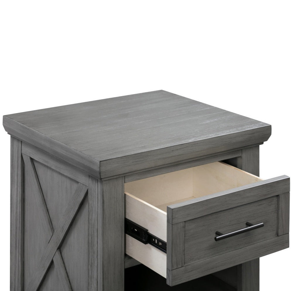 The Emory Farmhouse Nightstand is the perfect accent piece to complete your rustic nursery look.