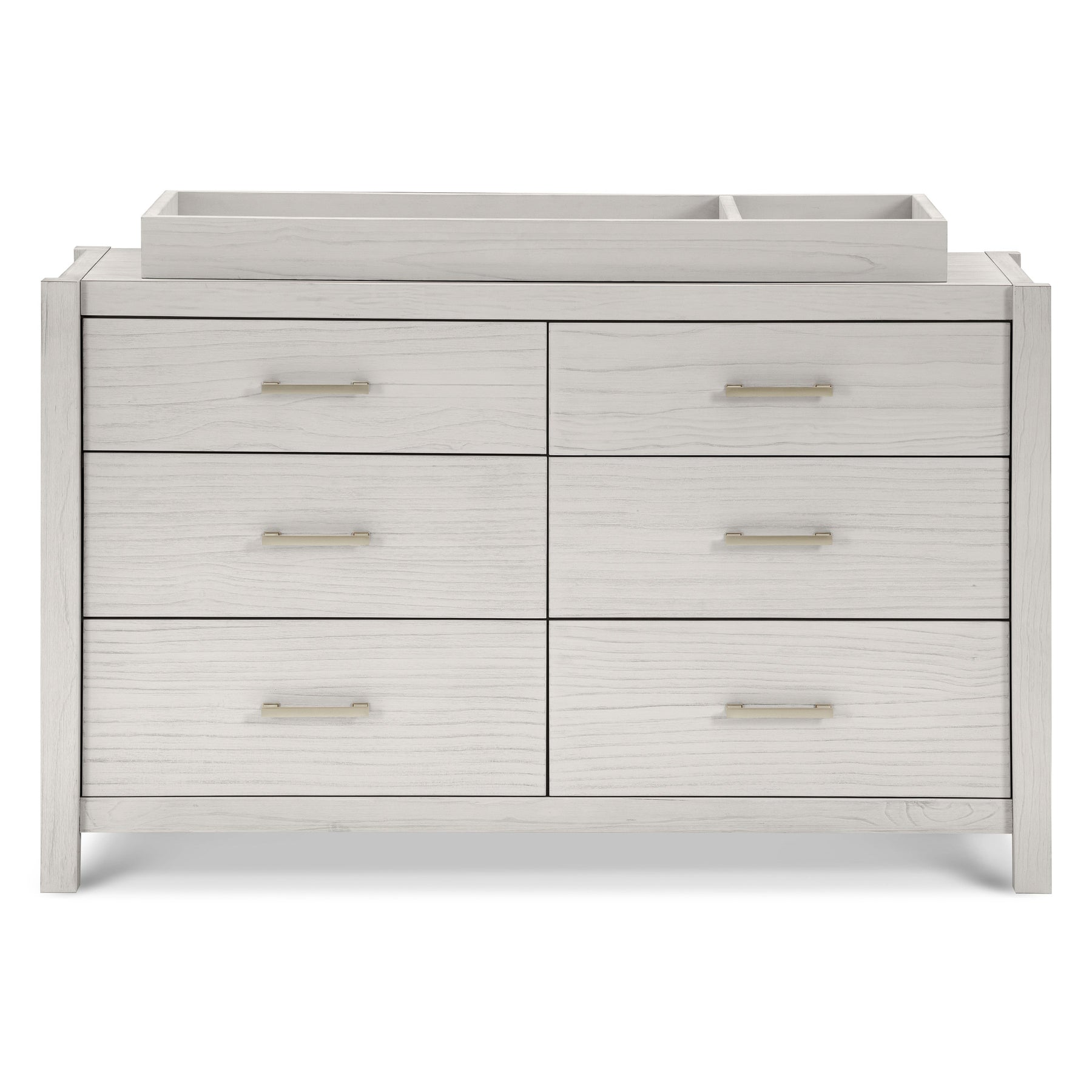 Complete your modern farmhouse nursery with the Hemsted 6-Drawer Dresser, featuring a premium texturized wood finish and elegant gold hardware that enhances the dresser's contemporary flair. Soft-closing, ball-bearing drawer glides make this dresser easy to use.