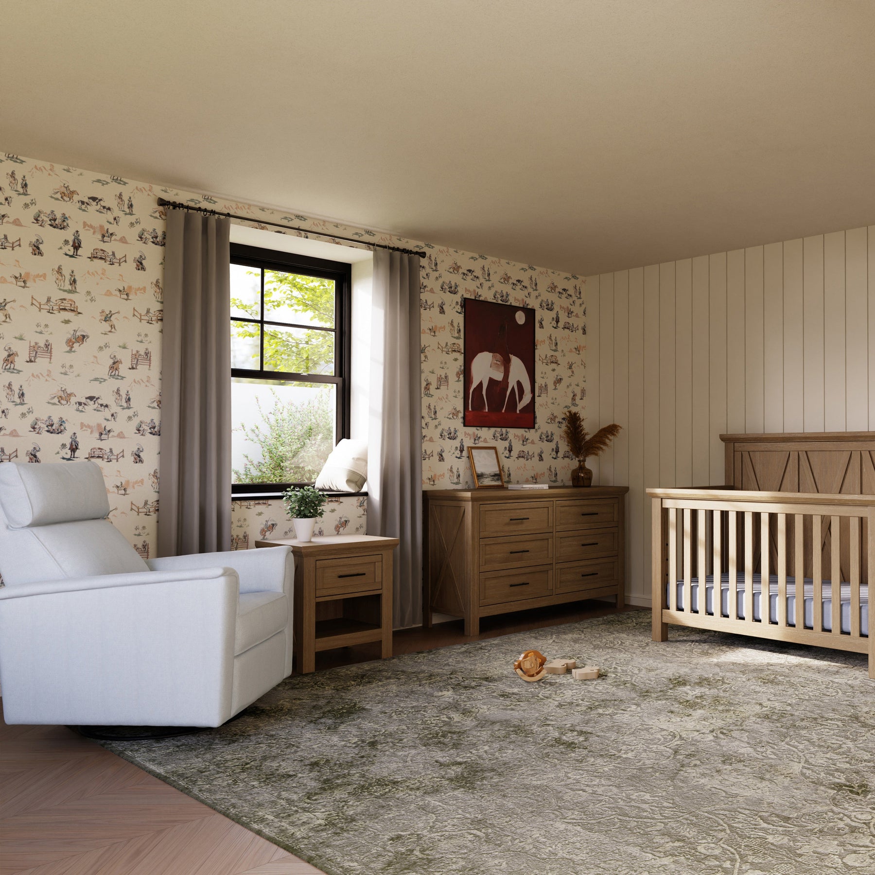 The Emory Farmhouse Nightstand is the perfect accent piece to complete your rustic nursery look.