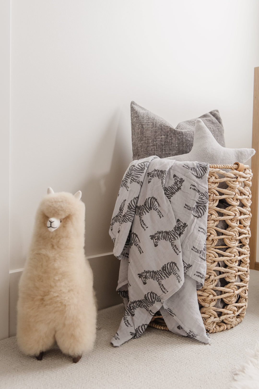 Crafted in lightweight and breathable cotton muslin, ideal for swaddling, nursing, cuddling and more.