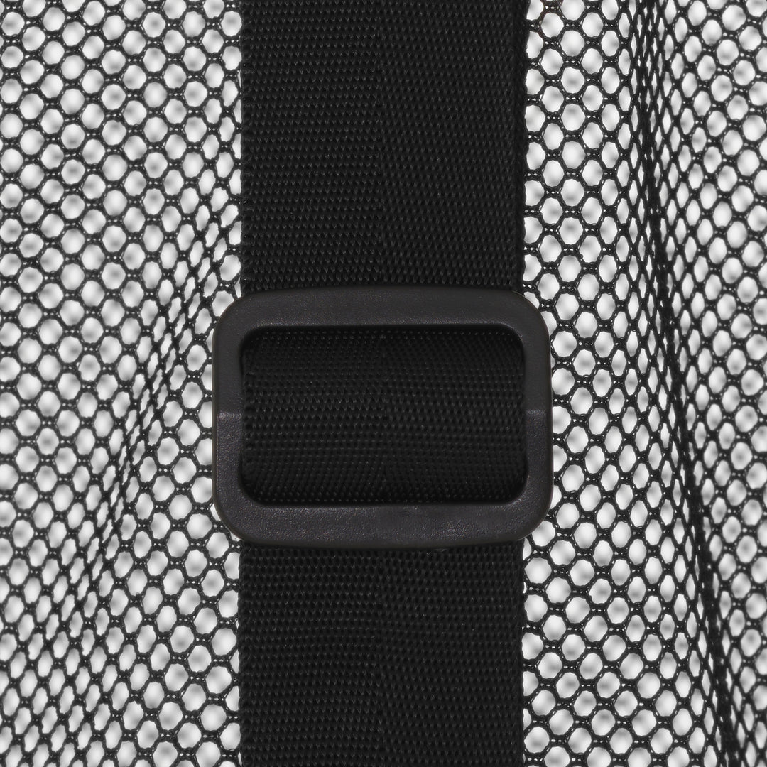 - Mesh material allows sand to fall through and wet towels and gear to air dry.