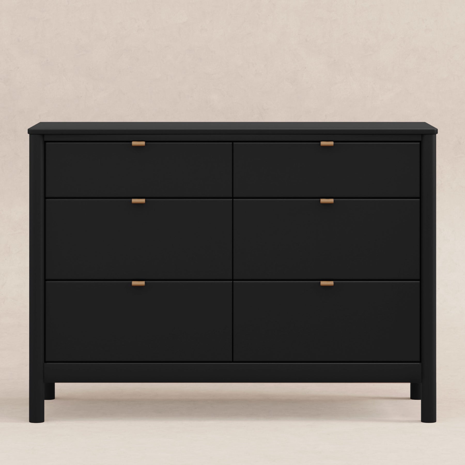 The simple yet sophisticated Bondi 6-Drawer Assembled Dresser complements both the Babyletto Bondi Cane 3-in-1 Crib and the Bondi Boucle 4-in-1 Crib with its warm wood finish and tonal vegan leather drawer pulls, rounded posts and minimalist silhouette. It's designed for the nursery with spacious smooth-glide drawers, included anti-tip kit for safety, and best-of-all it arrives fully assembled, ready out of the box.