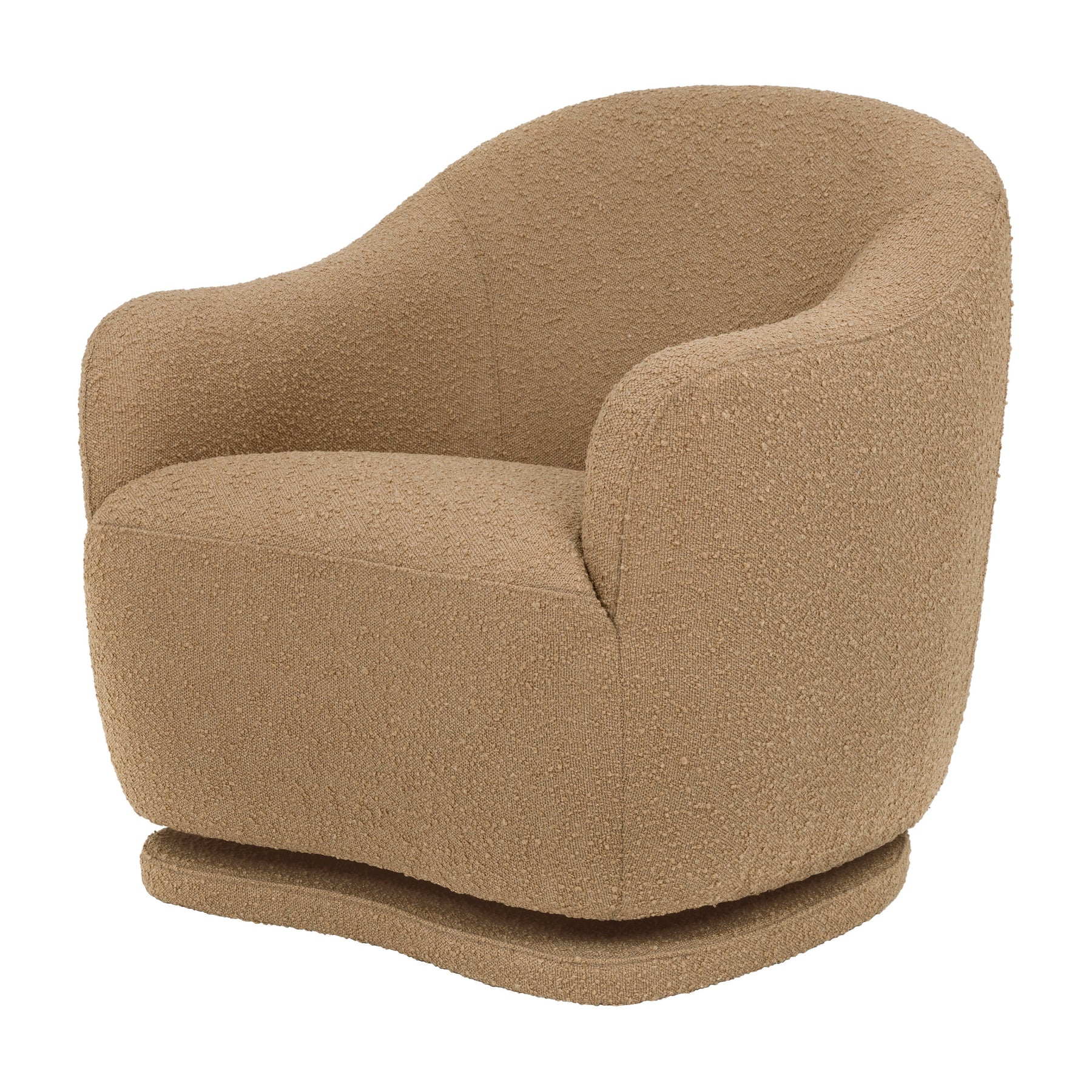 Cozy up and relax with your little one in the comfort of the Foy Glider. Its softly rounded, curved silhouette and spacious seat make for heavenly cuddling while the tonal upholstered base allows you to effortlessly glide your babe to sleep. Upholstered by hand in beautifully textured boucle fabric, the Foy Glider brings a cozy modern, contemporary feel to the nursery or your favorite reading nook.