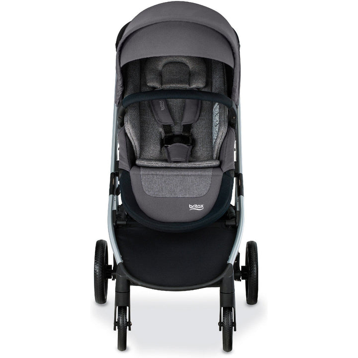 • UPF 50+ CANOPY: Britax stroller with UPF 50+ canopy with flip-down sun visor and peek-a-boo window