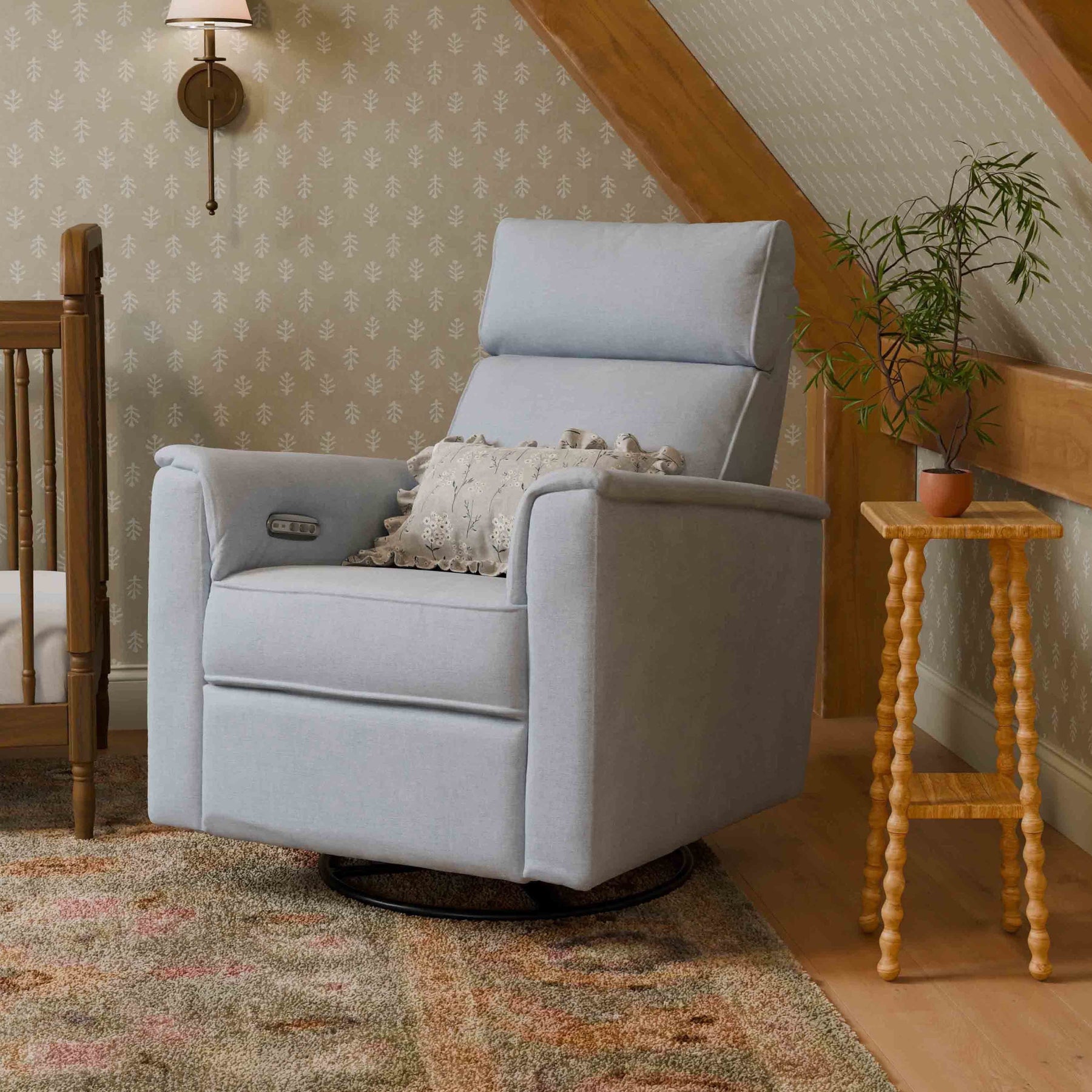 A deluxe, electronic version of our best-selling Willa Recliner. With thoughtful details and clean lines, the Willa Plus Power Glider Recliner w/ Power Headrest combines modern design with traditional comfort. Its pillow lined arms, smooth glide, and power recline + power headrest create the most comfortable and luxurious resting spot for you and your baby.