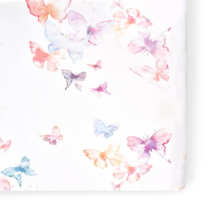 Designed for high couture and maximum comfort, Oilo's fitted crib sheets are as soft as they are stylish. Our Butterfly design features playful butterflies in soft pastel colors. It adds a touch of feminine whimsy to your baby's nursery!
