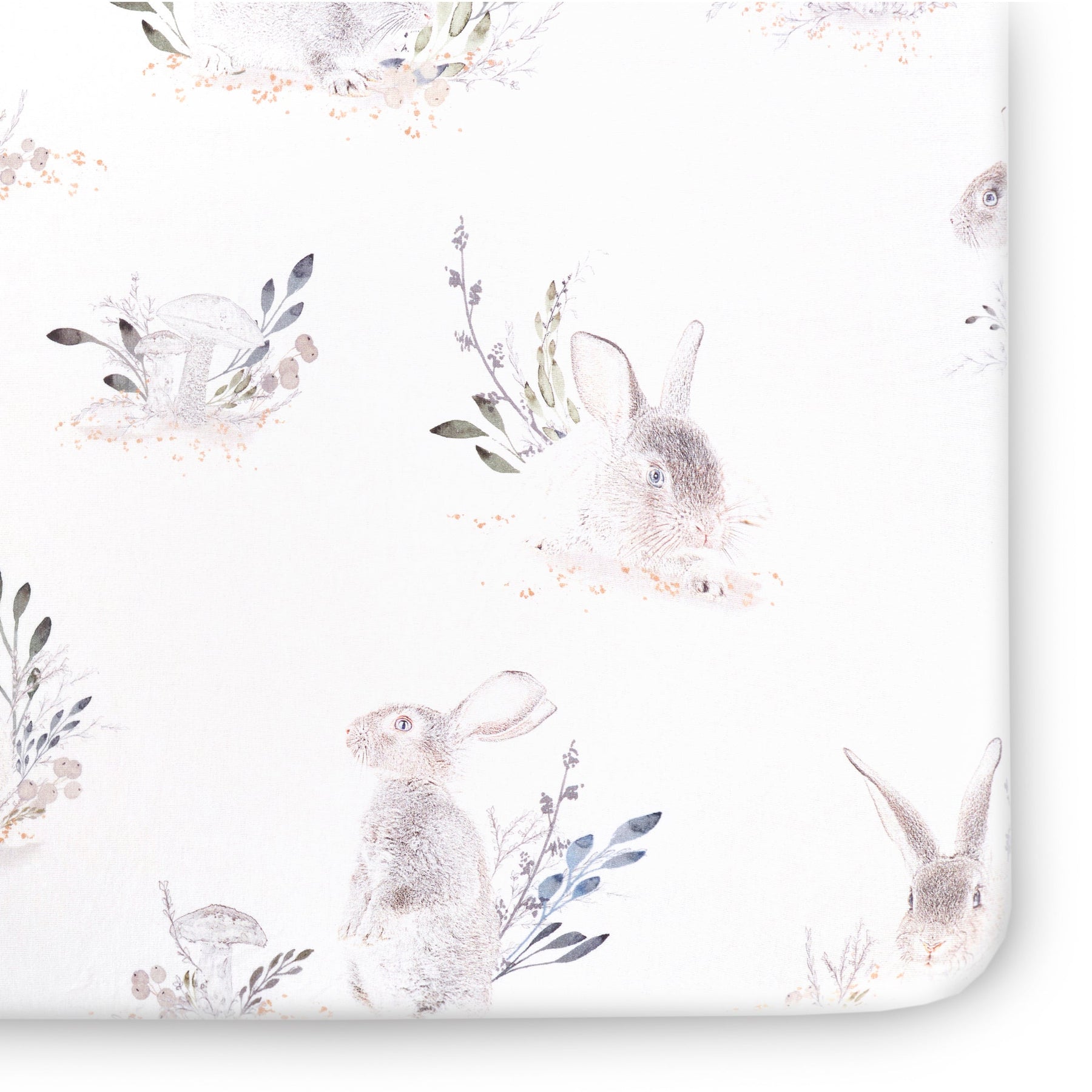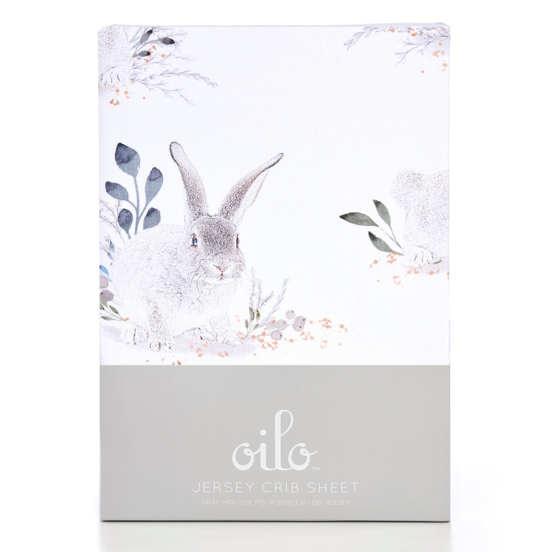 Designed for high couture and maximum comfort, Oilo's fitted crib sheets are as soft as they are stylish. Our Cottontail bunny rabbit design features playful bunnies among flowers and leaves, in soft pastels and gray colors. It adds a touch of imaginative whimsy to your baby's nursery!