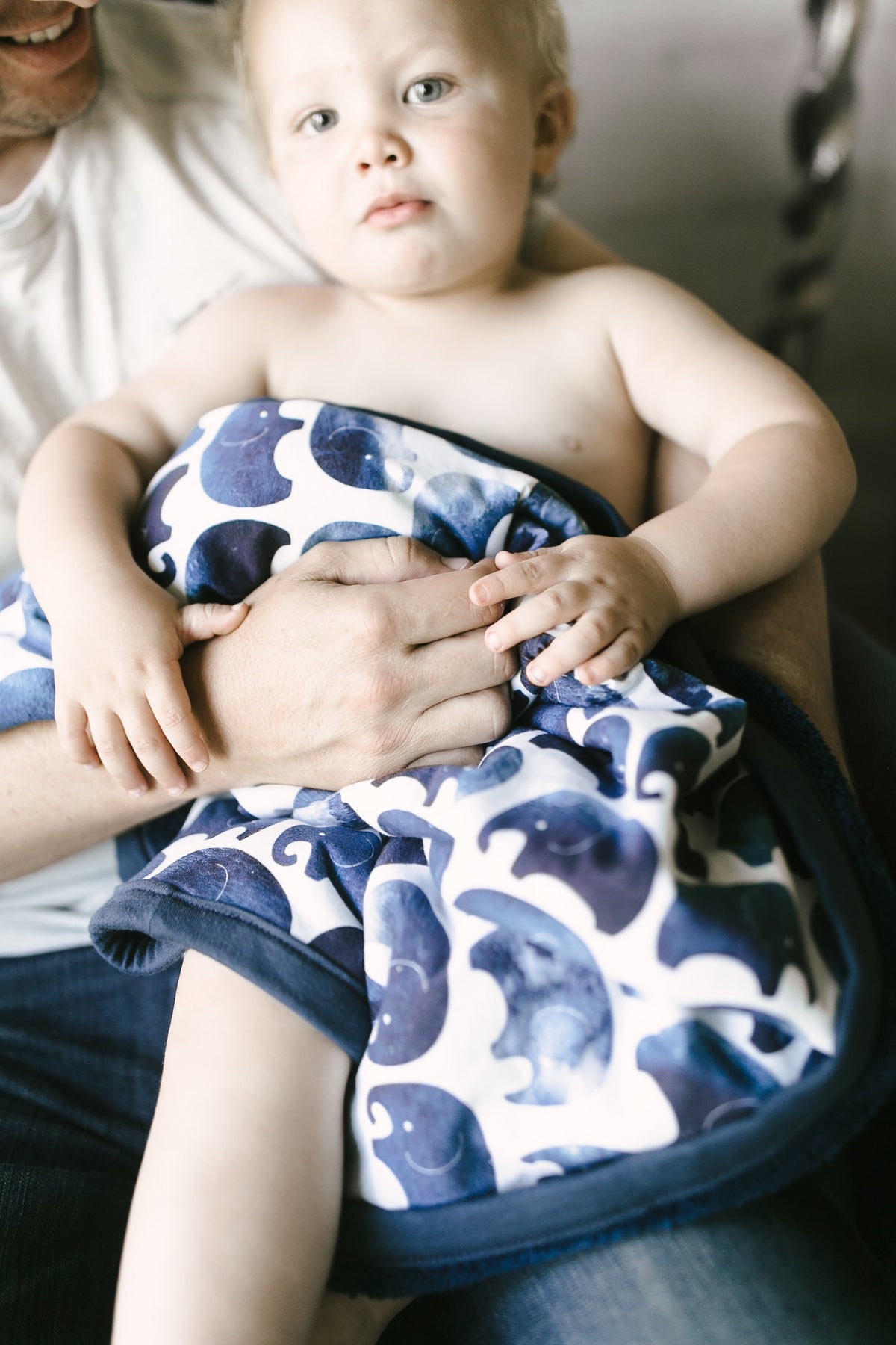Drape your baby in plush luxury with Oilo’s Cuddle Blanket. Our Elefant design features playful elephants in rich navy blue colors. It adds a touch of imaginative whimsy to your baby's nursery.