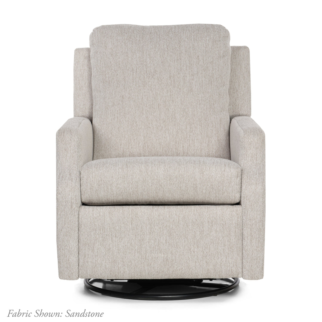 Our exclusive Harlow recliner glider also has additional full swivel motion.  It features a hidden recliner lever on the inside of the arm which is easier to reach and has no bulky handle on the outside of the chair. The fit and comfort of this chair is like a dream. This 39” extra tall back gives support that’s a head above the average recliner!