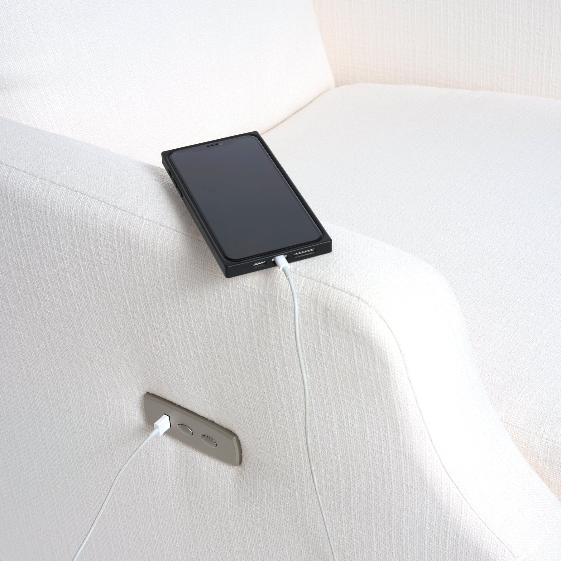 Quietly and effortlessly recline your recliner with the push of a button.This is our favorite feature here at Oilo. Especially when you want to find your perfect recline position without waking your sleeping baby. Plus our motorized recline feature has a USB port that will charge most current phones.