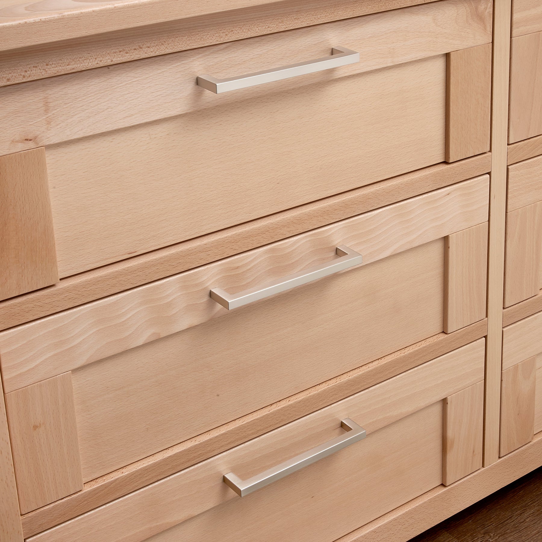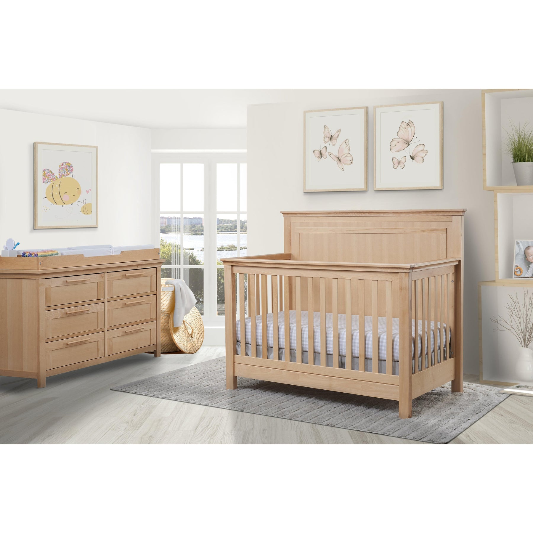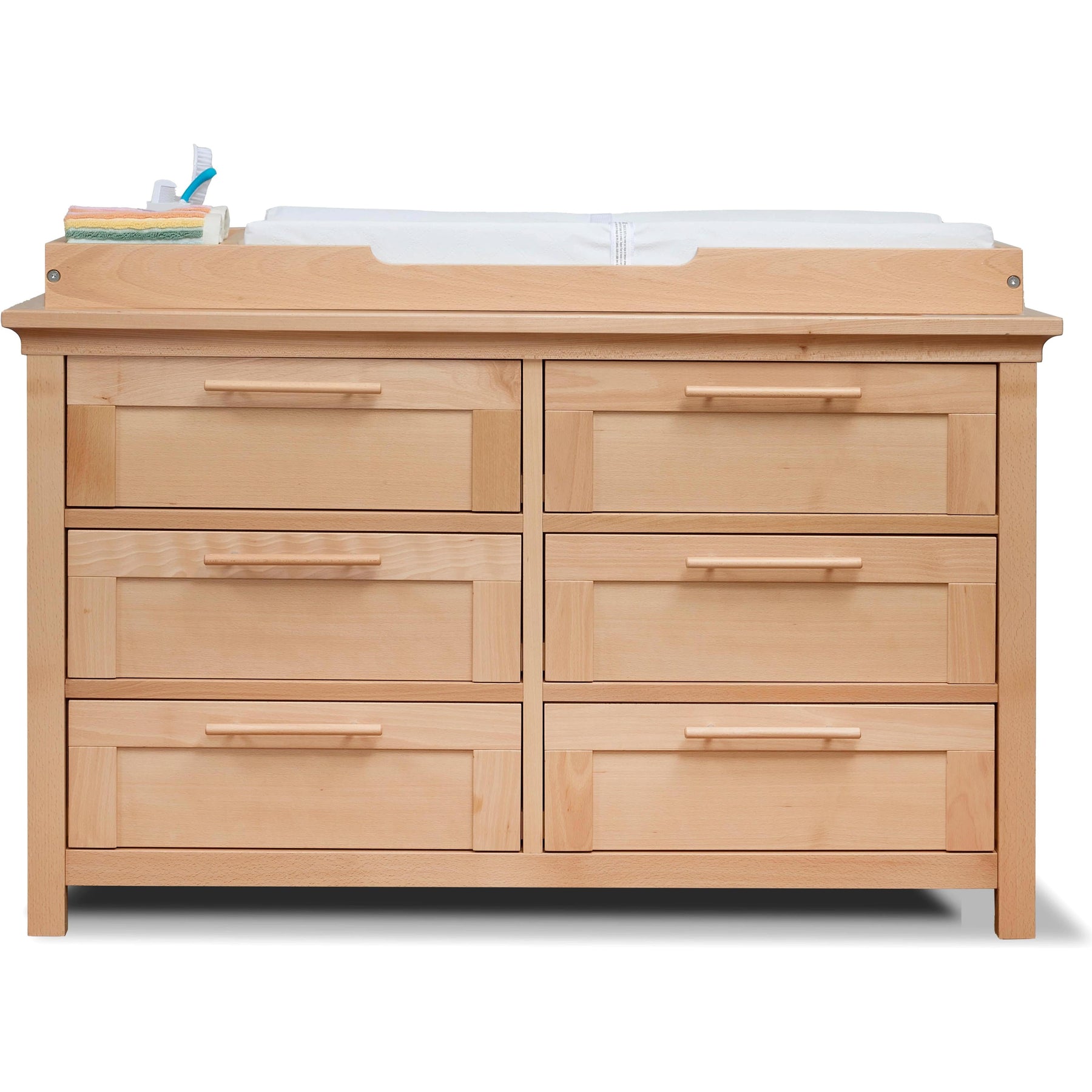 Bundle set including the Luna Crib, Luna Double Dresser and topper. Made in Italy of solid Beech wood. The double dresser features undermounted soft closing runners and includes 2 sets of handle, wooden and metal.