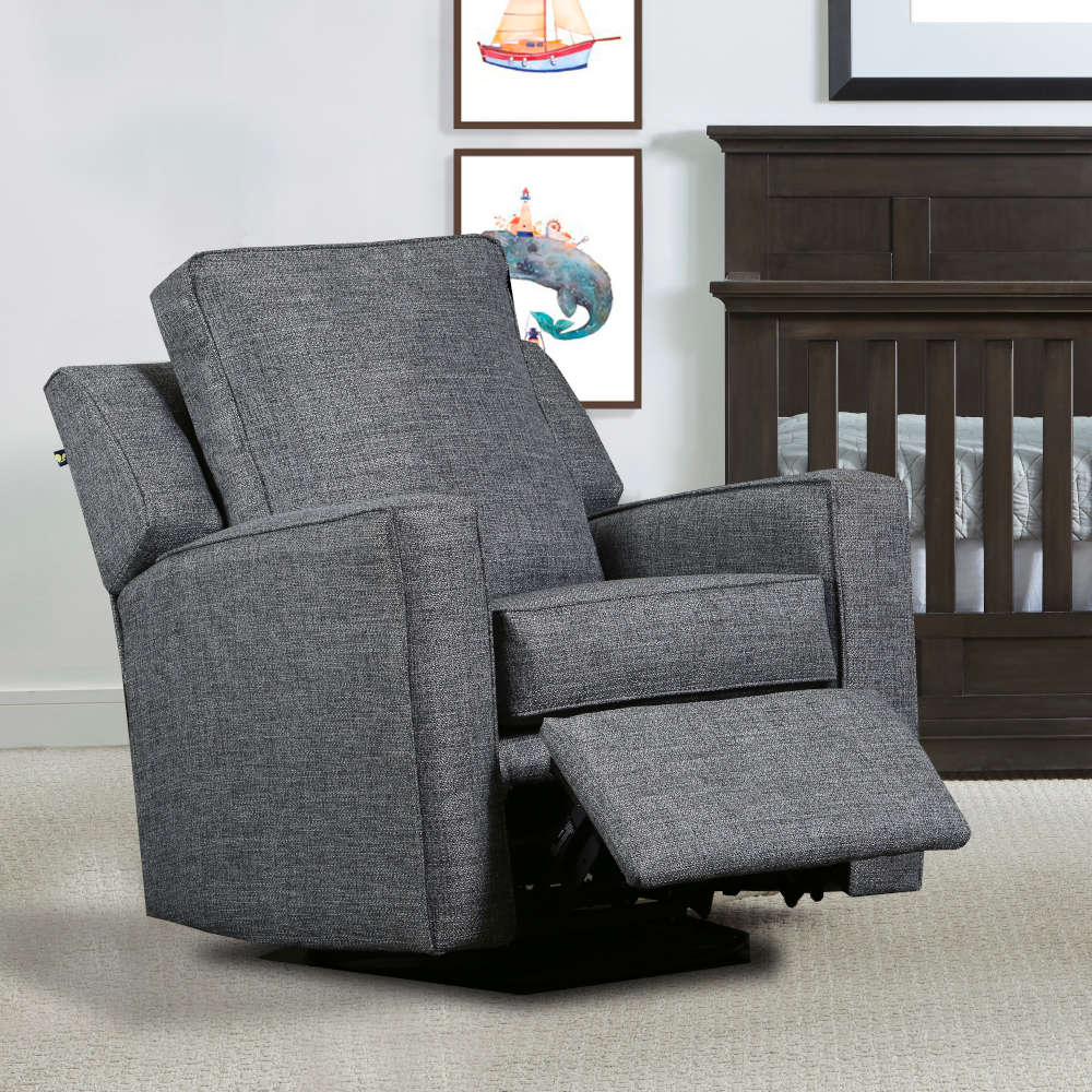 Harrison Recliner embodies the feel and style from our popular Miley Glider. With a higher back, slightly deeper seat this transitional personality complements that dapper or chic nursery. This well-dressed recliner rises to the occasion when late night cuddling is needed.