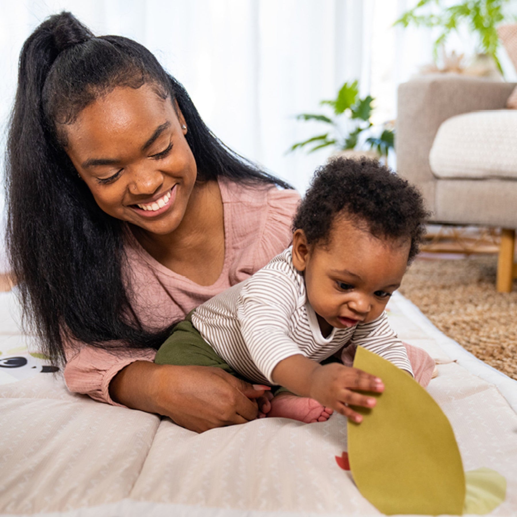 Large enough to play in with siblings, friends and parents, the mat's spacious design invites babies to explore movement: rolling, stretching and, later on, making their first attempts at crawling.