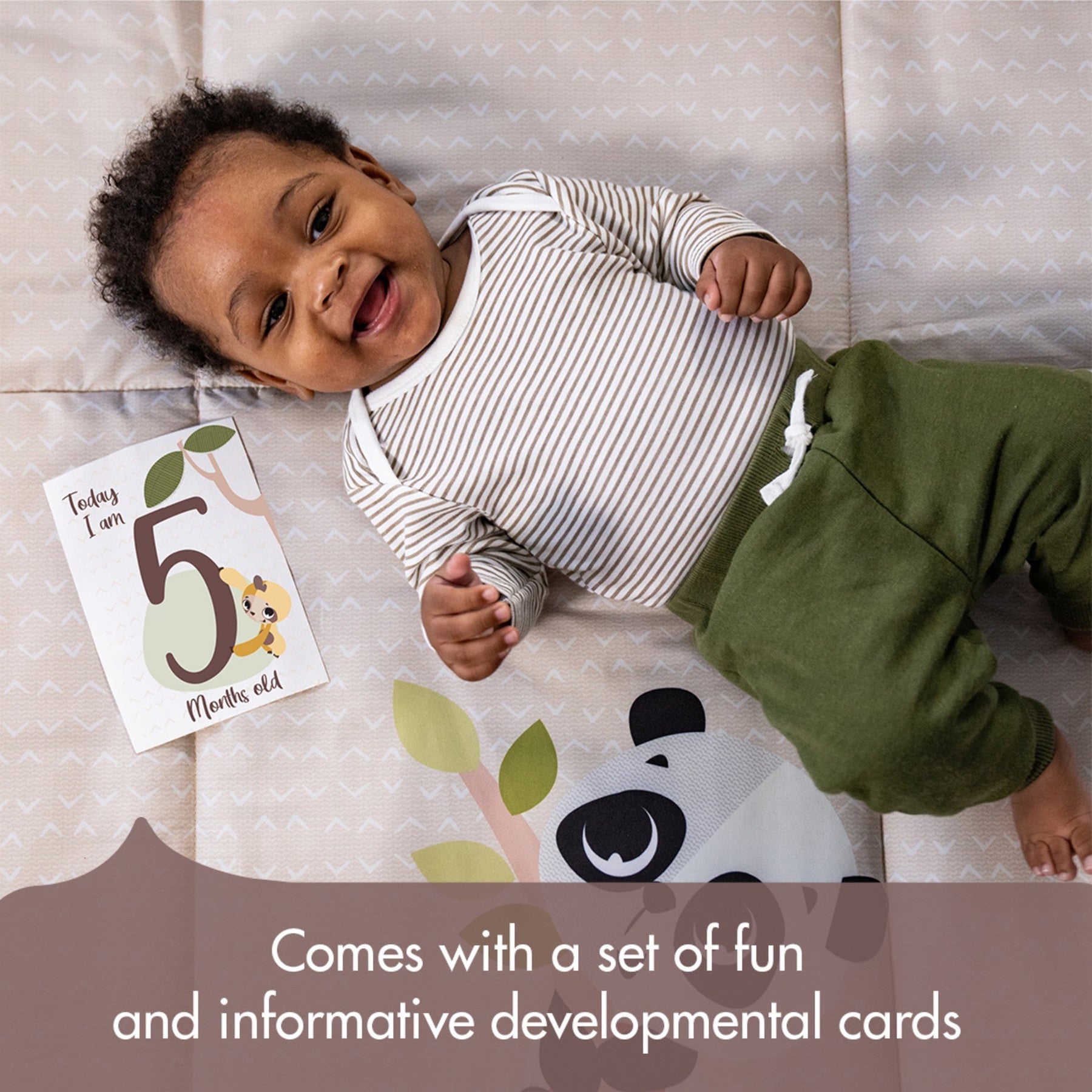 - Includes 12 monthly milestone cards with informative developmental tips and photo opportunities for baby.
