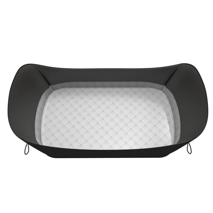 The Nap System turns Cruiser into a JPMA safety certified Bassinet, making it the ultimate rest stop or changing station for young ones. It is suitable from birth up to 20 lbs. [9 Kg] and/or 27” [69 cm], whichever comes first or until your infant pushes up on their hands and knees. A soft, removable mattress pad is included. The Nap System includes magnets built into its cleanable sidewalls that keep it snug to the Cruiser sidewalls, and includes four bungee connection cords that attach to the seat backs to keep little ones safe. A bug shield that zips on a sun canopy to cover the Cruiser is included (retractable sun canopy sold separately). The Nap System makes a great changing station as well. The Nap System compactly folds up into a storage bag that mounts to Cruiser and it also fits in the Foldable Storage Basket when not in use.